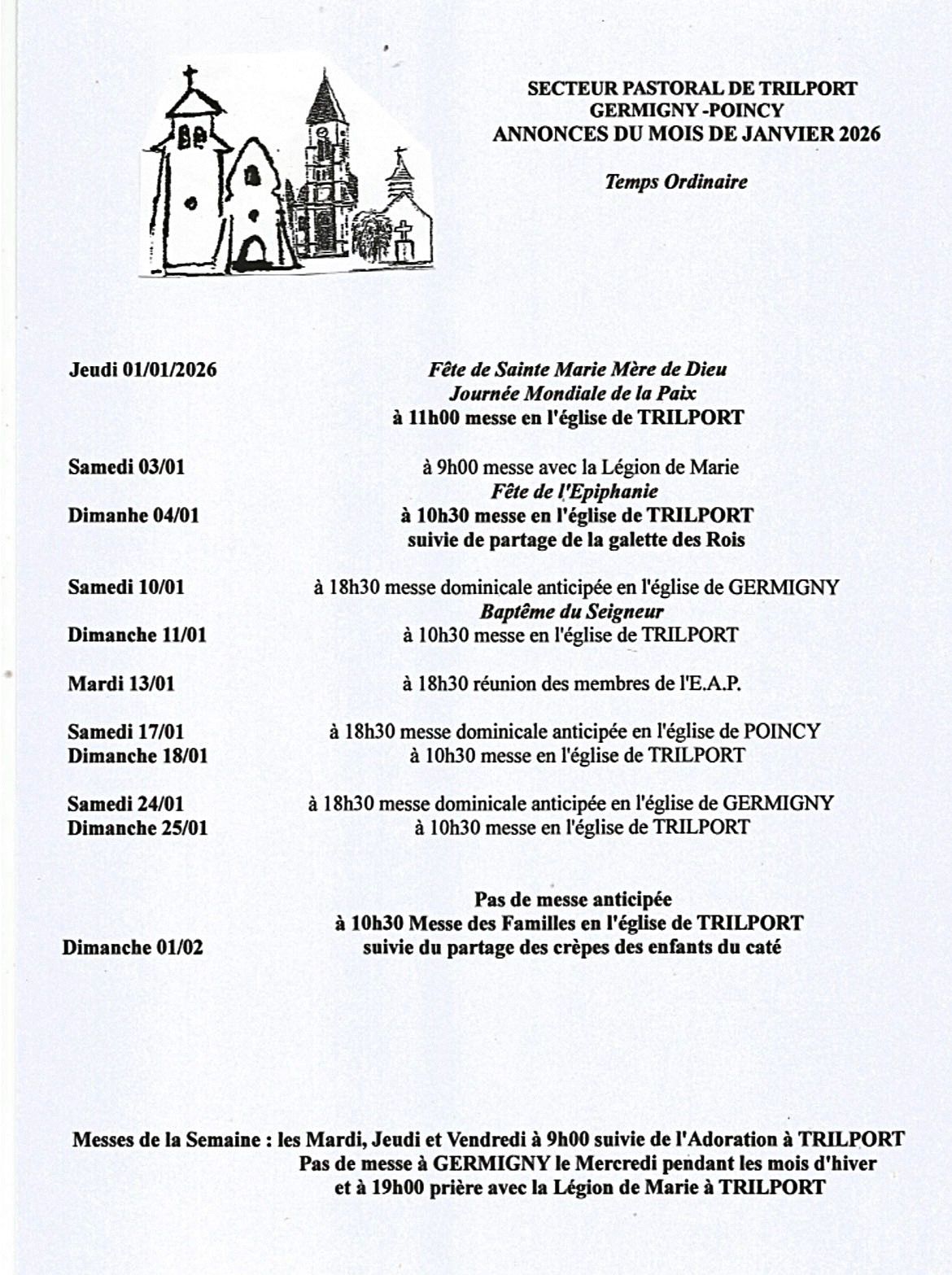 Les messes du mois Février 2026